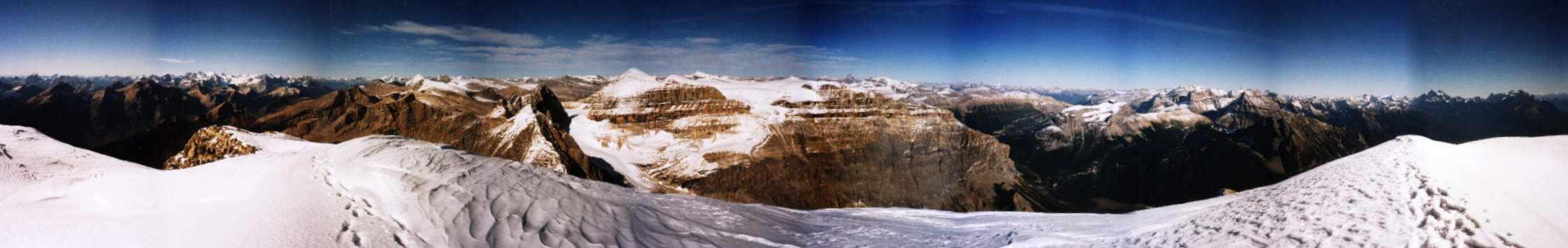 At the top! Dan and Sonny stand beside the cairn on the 3040-metre summit.  Click here for a panoramic view from the top.