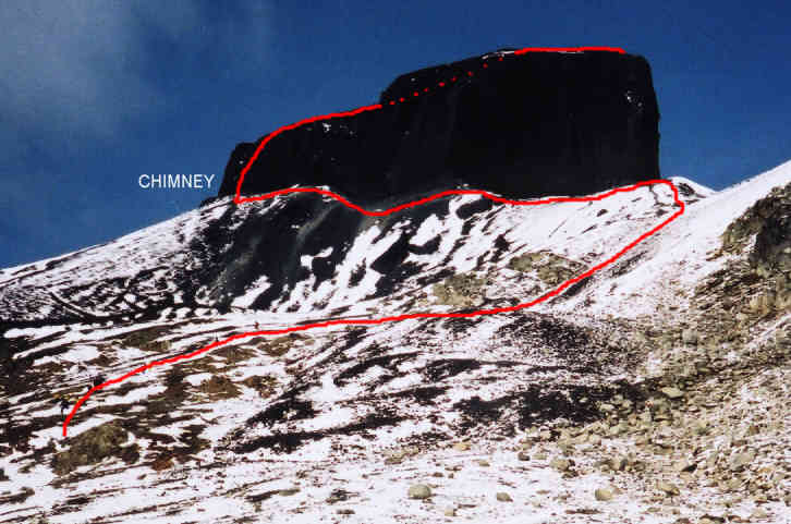 The true summit of the Black Tusk is actually on a separate pinnacle to the north and is about one metre higher.  Unfortunately (or fortunately), it is a technical climb which puts it beyond the realm of scramblers like myself.  Besides, I had enough to worry about with the descent of the chimney which turned out to be not as bad as I had anticipated.  By downclimbing slowly and cautiously, I managed to get down without a scrape.  The return to the campground was uneventful except that the melting snow made parts of the trail muddy and slippery.  Total round trip time to the Black Tusk from the Garibaldi Lake Campgound was about five hours.