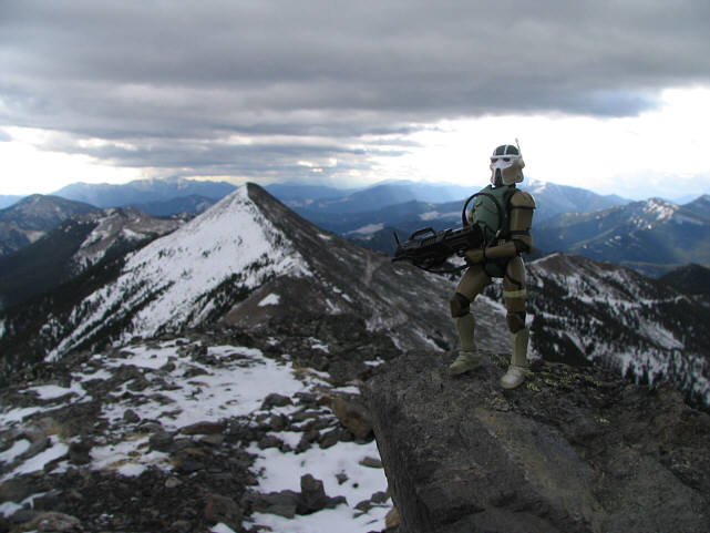 It takes about 45 minutes to traverse between the two summits. Sonny begins dropping down the ridge as he heads for the north summit.