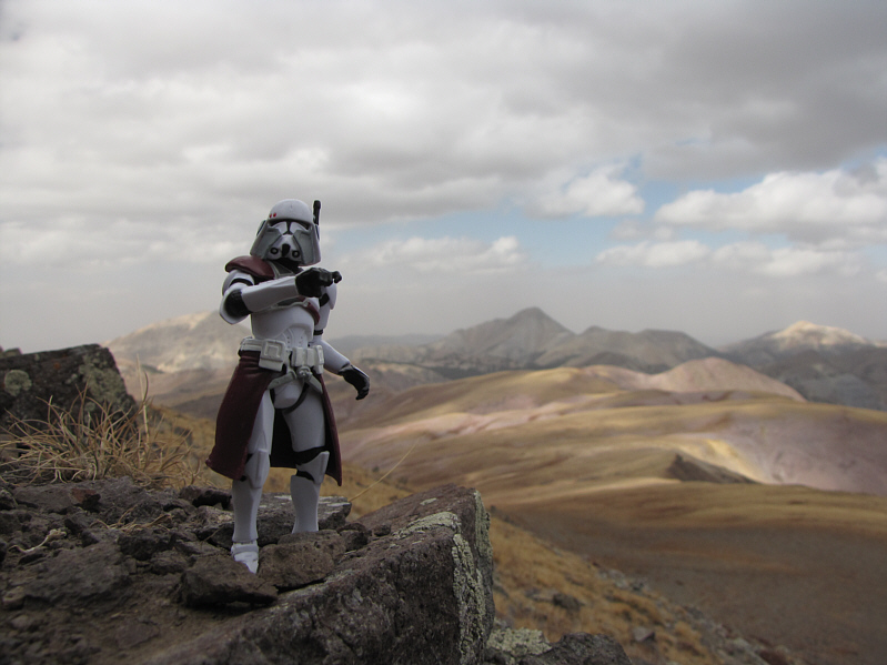 Sonny stands on the 3710-metre summit of Delano Peak. |