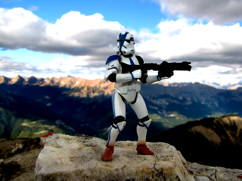 A bit of a chilly breeze but otherwise not a bad evening to be up here. Sonny sits beside the cairn on the 2527-metre summit of Mount Seven.