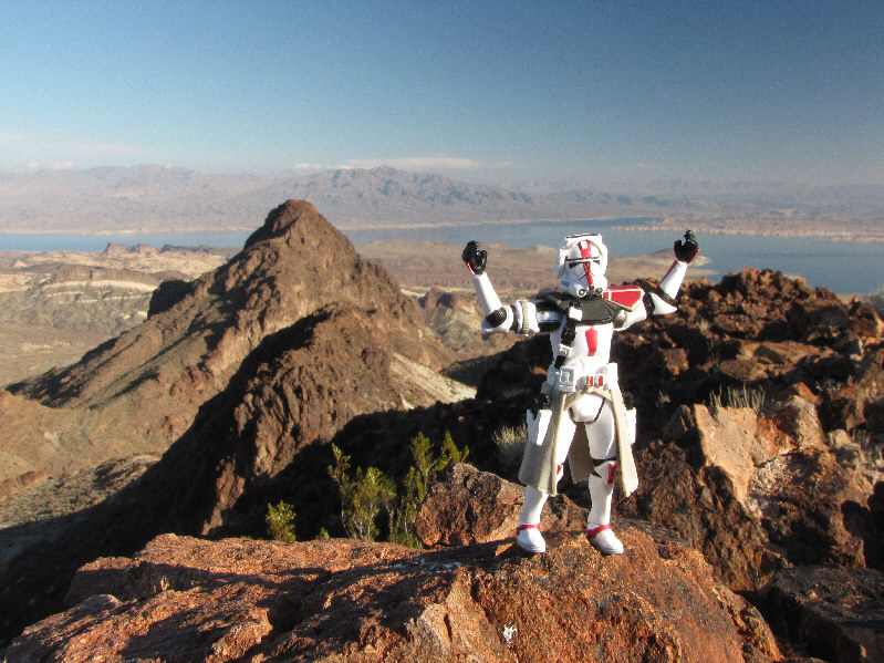Although I'm loathe to drive the Boathouse Cove Road again, Manganese Peak just might be worth a return visit. The Overton Arm of Lake Mead and Manganese Peak (left) are visible to the east.