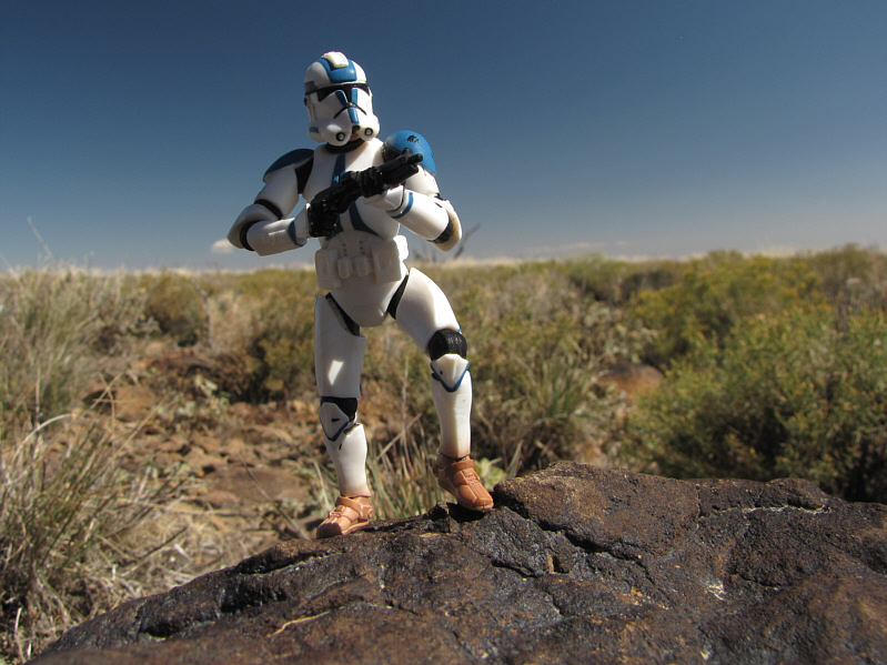 Dinah surveys the open terrain. The summit of Pinto Mountain is still not visible here. |