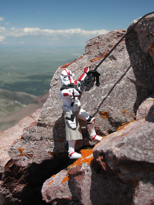 Luckily, the crux was largely sheltered from the wind. Here is another view of the crux with the summit just beyond.
