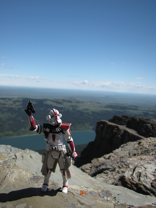It's an official high point, so I'll claim it! Sonny straddles a tiny cairn on the 2286-metre summit of Scenic Point.