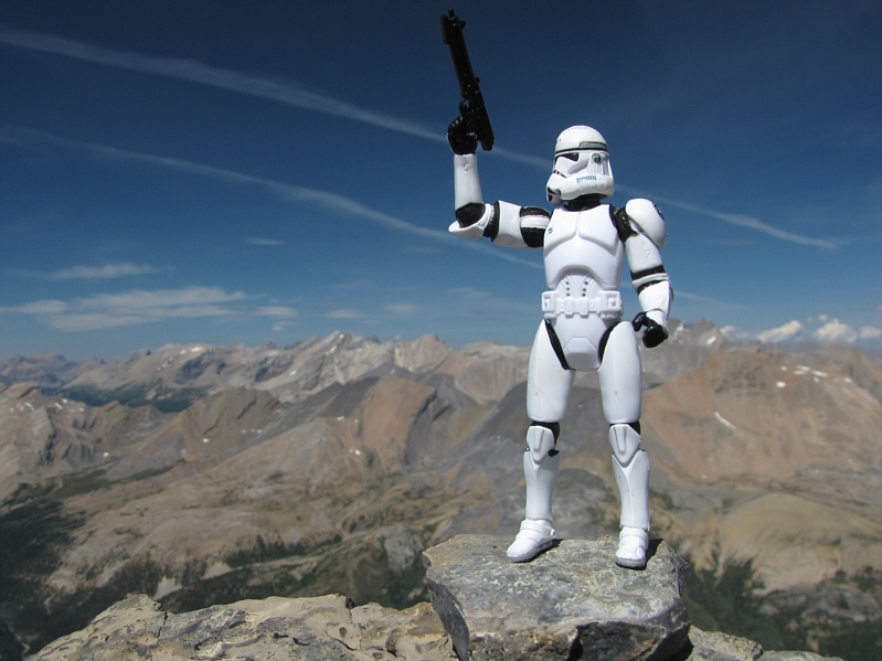 Gathered on the 3001-metre summit of Noseeum Mountain are (L to R) Bob, Sonny, Becky, Hanna, Zora, Wendy, Bernadette, and Jonathan.