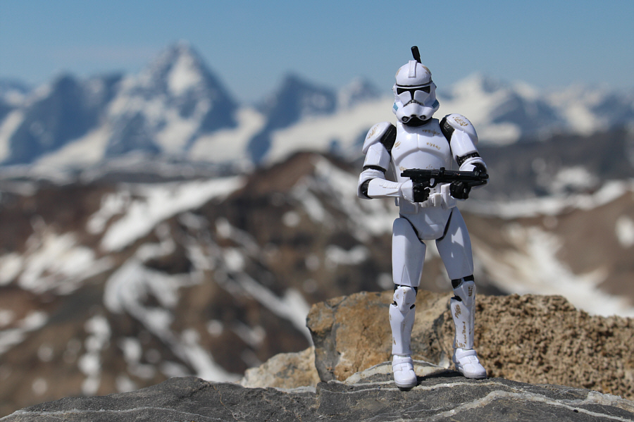 We're gonna go there? Today?? From just below the summit of Dawn Mountain, Dogtooth Peak (left) and Moonraker Peak (right) finally come into view.