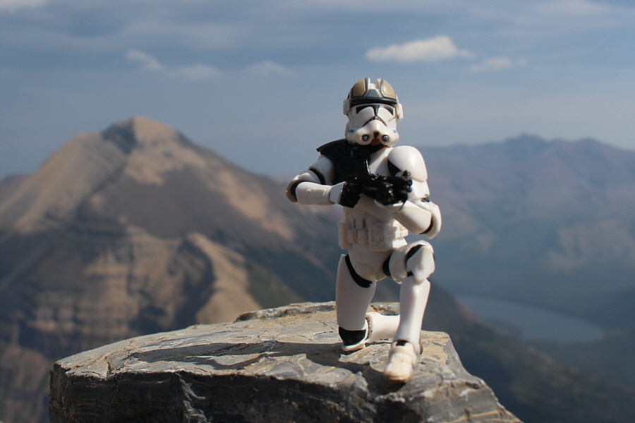 The eastern outlier grants this unobstructed view of Rising Wolf Mountain and Two Medicine Lake. At bottom right is the top of Pumpelly Pillar.