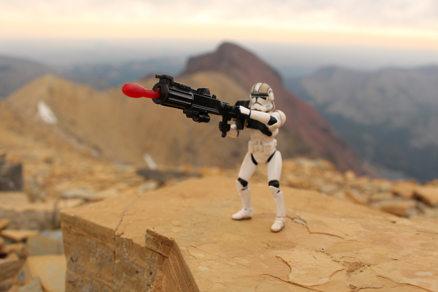 Here is a comprehensive view of Rising Wolf Mountain's west ridge. Note the trail runners on the left bump. |