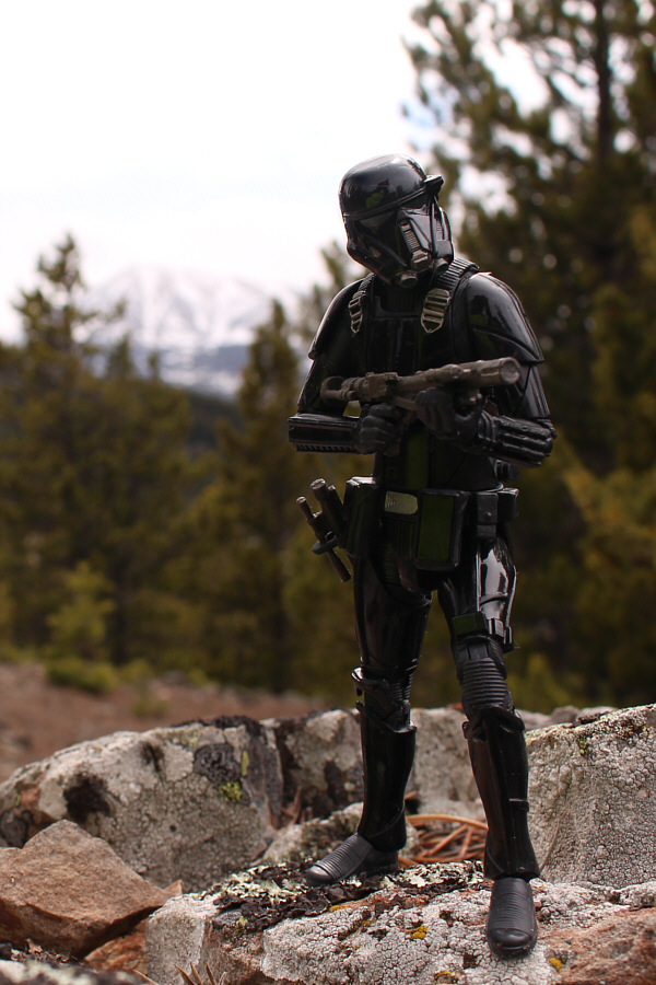 Dorota watches as Houmaro struggles a bit in the deep snow while descending the north side of Piney Point Ridge. |