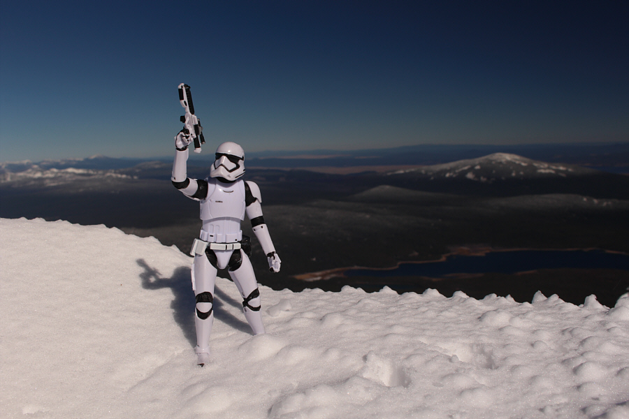 From the trailhead, we hiked a well-maintained trail which briefly joins the Pacific Crest Trail before branching off to climb steadily up forested slopes on the east side of Mount McLoughlin. On this day, much of the trail was snow-covered, and as we climbed higher, it became increasingly difficult to stay on track. Several other hikers initially broke trail for us through the ankle-deep snow, but we eventually passed all of them and had to break our own trail. One particular pair of hikers were very fast and passed us early in the day, but they stopped quite often to sit down for a smoke. As the snow deepened higher up, I suspect that they lingered a bit longer on purpose to allow Zosia and me to break trail for them!