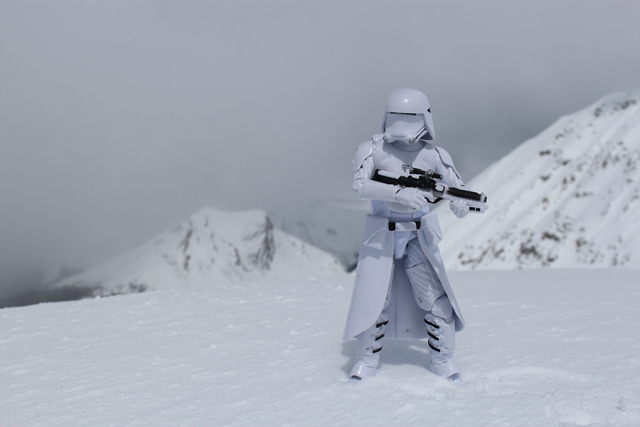 The snow on Ptarmigan Lake looks pristine on this day. At centre is