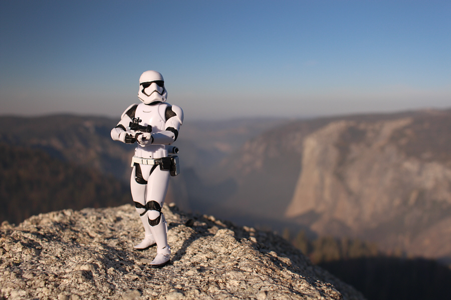 A roadside pullout on the way to Yosemite Valley grants this view of (L to R) El Capitan, Half Dome, Sentinel Dome and Cathedral Rocks. |