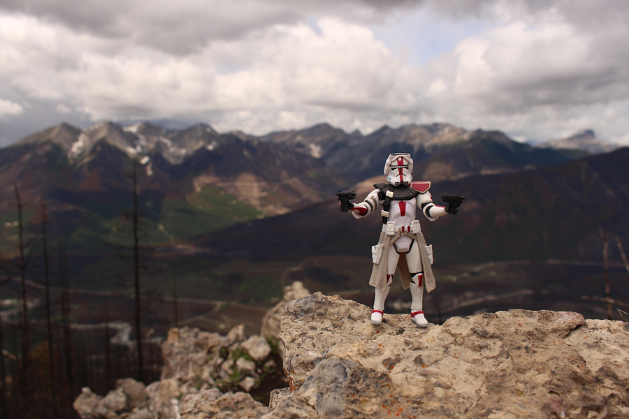 Leslie emerges from the burnt forest onto a semi-open ridge. |