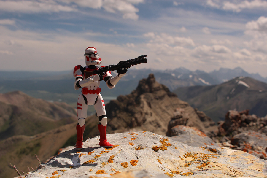 More interesting peaks in the US can be seen on the distant horizon! The view to the southwest includes Ruby Ridge (left), Mount Lineham (left of centre), and Mount Blakiston (right).